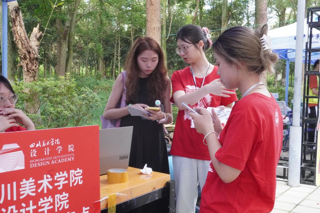 从9月13日早晨开始,学院志愿者一直坚守在迎新岗位,热情接待每一位新生及家长。在这支志愿服务队中,有一部分志愿者格外引人注目:他们胸前佩戴着党徽,左臂戴着志愿者红袖章。除了迎新志愿者,他们还有另外两重身份:既是即将入学的2023级新生,更是学生党员。虽然他们尚未正式成为川美学子,但是却积极响应组织号召,在党组织有需要的时候挺身而出,为学院迎新志愿服务工作贡献力量。他们在学校南门、西门、设计学院大厅等迎新点热情地向新生介绍学校周边环境,耐心回答新生们提出的问题,他们用亲切的笑容、周到的服务认真对待每一位新生和家长,充分展现了大学生党员勇于担当、积极向上的精神风貌。