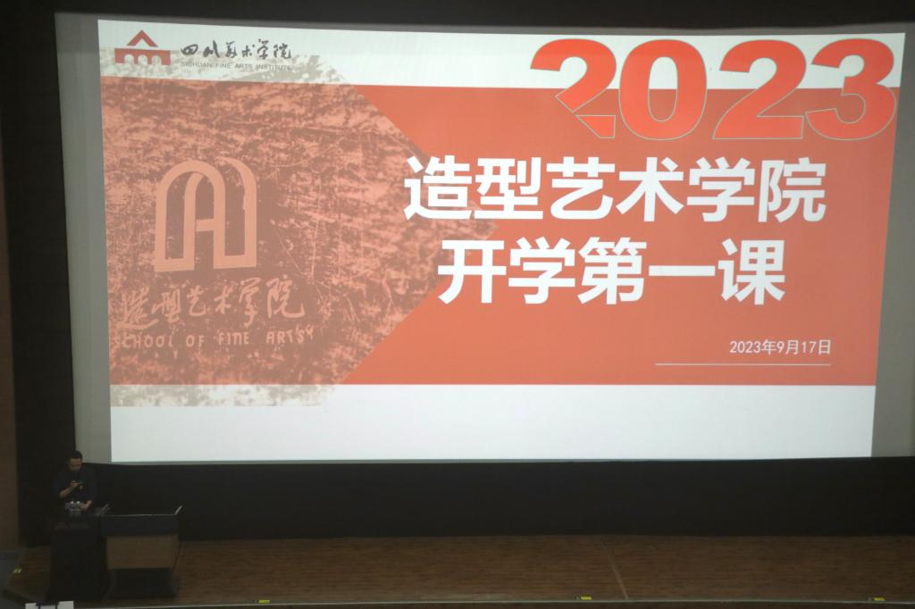 韦芳主讲开学第一课。她首先立足于时代的新起点、历史的新方位,介绍了 校史、学院设置情况、学科专业实力,梳理了自1940年建校至今学校的发展历程。她指出,学校作为中国西南地区唯一一所高等美术院校,是最早开展硕士培养的美术学院之一,2021年获批博士学位授予单位,造型艺术学院作为美术学学术学位博士点和美术与书法专业学位博士点的牵头建设单位,在全国第五轮学科评估和首轮专业学位水平评估中取得重大突破,绘画、雕塑获批国家级一流本科专业建设点,建构起学生对学校和学院的归属感和自豪感。随后,她阐述了学院“本硕博贯通培养”模式,对研究生教育学科专业目录的调整进行政策解读,结合油画系、版画系、雕塑系本科和研究生人才培养模式,突出学院对职业艺术家和艺术工作者的双线培养渠道,强化学生将个人目标与学院人才培养目标的有机融合。接着,韦芳介绍了培养资源情况,以罗中立奖学金、明天雕塑奖学金、未来星丛奖学金、礼物奖学金、依索帕拉艺术之星奖学金为代表的奖学金设置激励学生形成比学赶超、奋勇争先的学习氛围;国内外高水平展览、讲座、论坛、工作坊的举办为学生的艺术创作和学术研究搭建展示平台;青年艺术家驻留计划为毕业艺术学子搭建通向艺术远洋航船的跳板。最后,韦芳对同学们提出三点期望:在当前数字技术的广泛应用、人工智能+不断浸入人们日常生活、中国国力的不断增强与世界格局复杂多变的形势下,同学们应坚定为人民而创作的艺术使命,坚守“志于道、游于艺”的艺术初心,坚持“兼容并包、守正创新”的艺术理念,不负青春,砥砺前行,在川美拥有一段精彩的艺术成长之旅,希望同学们尽快熟悉学院,自觉主动与学院老师联系沟通,认真思考个人规划目标,充实、顺利地度过大学生活。