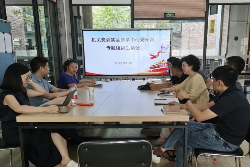 9月19日下午,机关党委实验教学中心党支部在实验教学中心办公室召开学习贯彻习近平新时代中国特色社会主义思想主题教育专题组织生活会。机关党委委员宋宗祥到会指导,实验教学中心副主任汪泳列席会议,会议由支部书记江楠主持,支部全体党员参会。