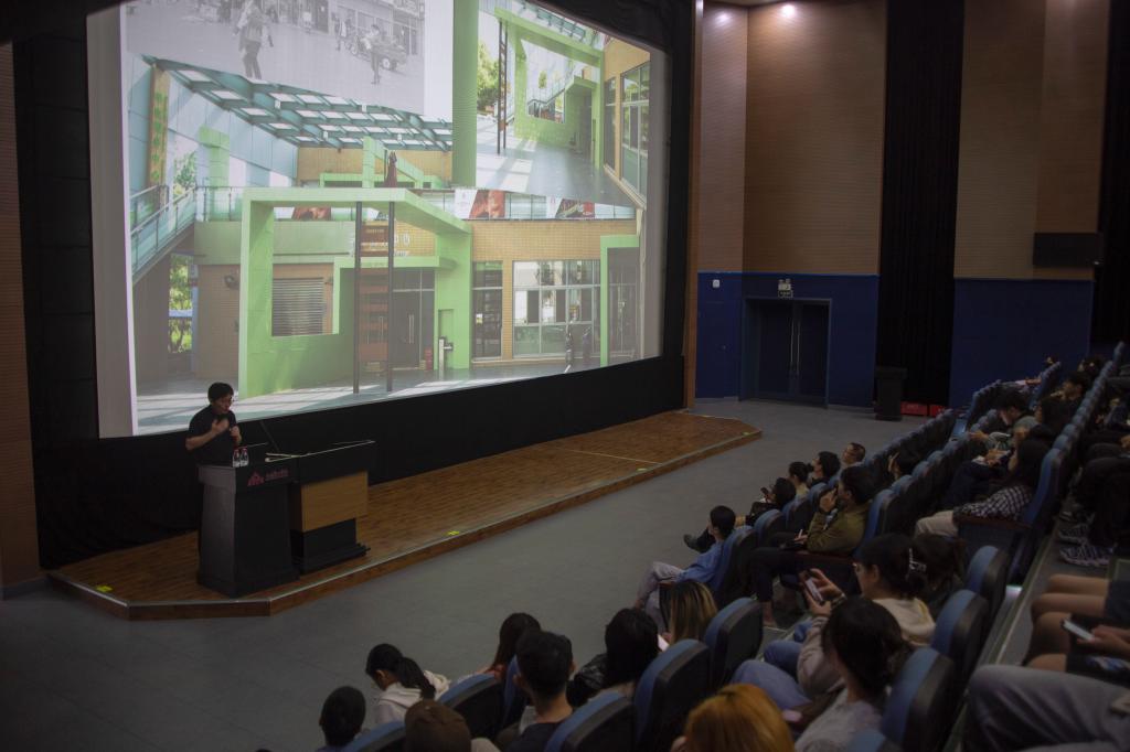 陆邵明围绕“空间情节的叙事建构与其创新应用”主题,首先从“何为空间情节”的探讨分析中展开本次讲座,随后步步推进,环环相扣,对“空间情节如何塑造”“空间情节何处可用”进行了深入浅出的讲解,并例举“乡愁再生:于城粮站改造”“陌桑幼儿园建设项目”等实证研究,生动讲解如何将线索、情节、故事等合理巧妙地运用到建筑设计之中,赢得了在场师生的热烈反馈。