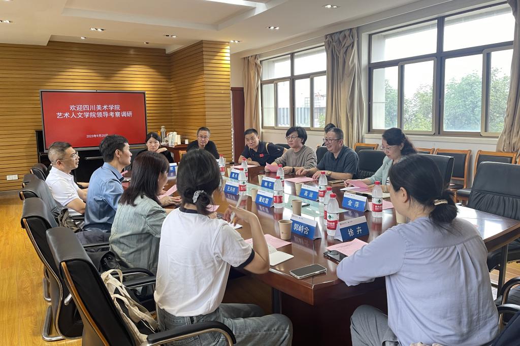 9月26日下午,副校长焦兴涛带领调研组来到中央美术学院。中央美术学院校长林茂、人文学院院长黄小峰、美术史系主任吴雪杉、艺术理论系主任王浩、艺术史与艺术遗产系副主任邵彦、美术史论系副主任王云、艺术理论系副主任文韬、图书馆馆长赵伟、青年教师段牛斗、郑伊看、刘爽、办公室主任孙晶参加座谈。黄小峰系统深入地介绍了人文学院的历史沿革、“五部三系”的院系布局,走向更加开放的、真正体现学科交叉的艺术史论与艺术学的构想。与会教师就学科变更与应对策略、学科方向建设、一流专业建设、师资队伍建设、学生就业与深造等话题进行深入探讨。