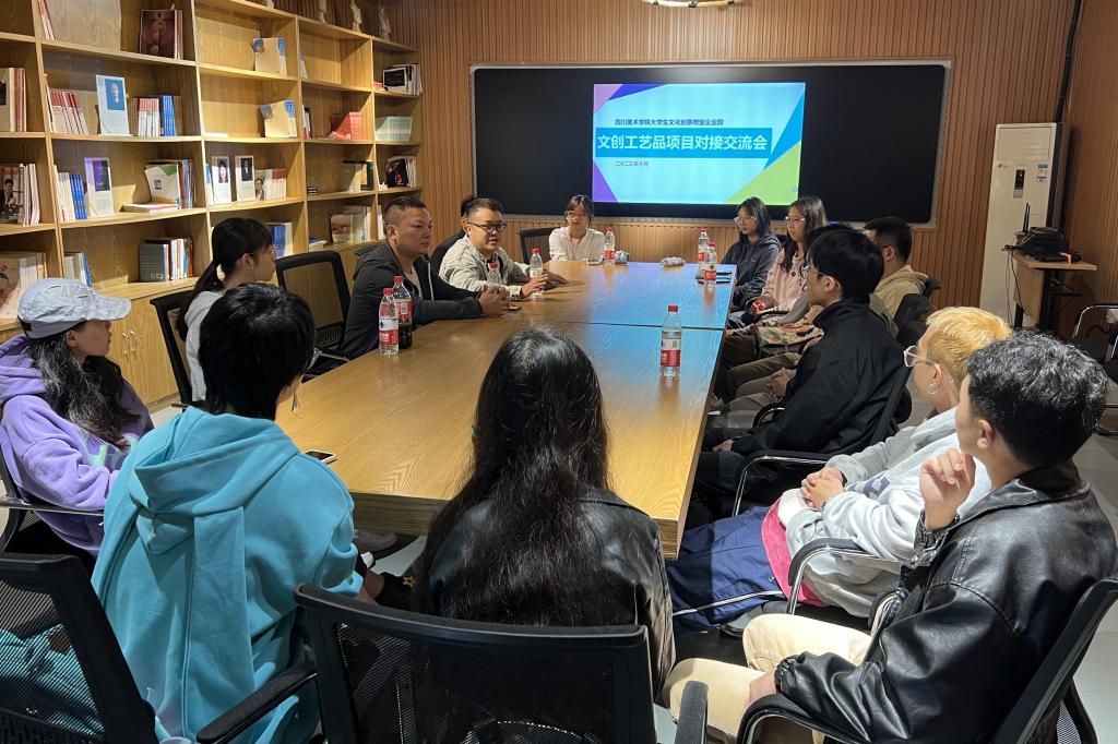 交流会上,周江重点介绍企业情况及文创工艺品设计上的具体需求,同学们现场将各自作品进行了分享。通过深度沟通,最终达成三个方向的合作意向:一是探索校企合作共育文创工艺品设计师的培训体系;二是学生们以命题设计、购买设计版权、设计作品的销售提成这三种模式进行项目合作;三是校友公司为我校学生提供免费的设计图打样服务。
