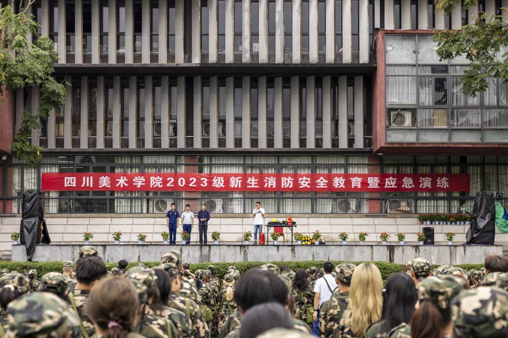 为强化校园消防安全责任,提高师生火灾应急能力,增强火灾防控意识,掌握疏散逃生方法,预防火灾事故发生,学校党委武装部、保卫处牵头,于9月25日下午在虎溪校区开展了2023级新生消防安全培训系列活动。培训专门邀请沙坪坝区消防救援支队对1600余名新生进行消防安全教育及应急演练。党委武装部副部长、保卫处副处长王麟主持此次培训。