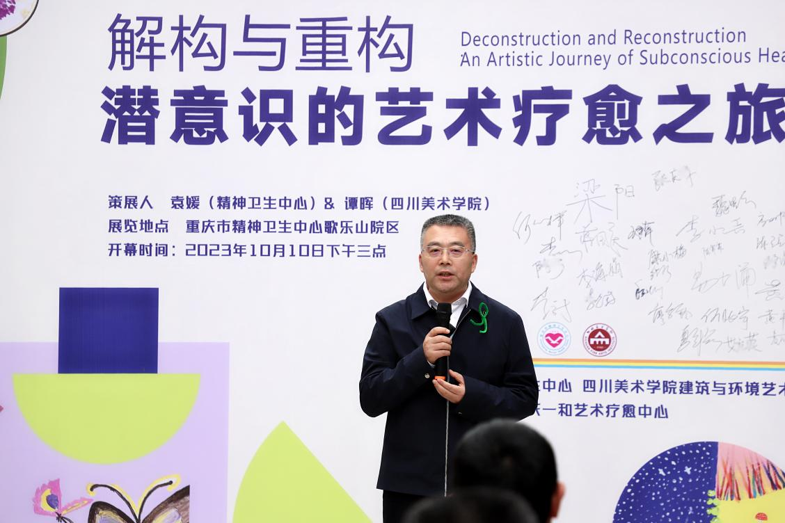 我衷心祝贺重庆市精神卫生中心与 自2018年以来的卓有成效的合作,我们的合作始终充满活力与创新,而这次的展览再次印证了这一事实。期待我们的合作能够继续深化,共同探索艺术介入精神疗愈的更多可能性。这次展览不仅仅是一次艺术的展示,更是重庆市精神卫生中心的一次精神医学的创新探索。艺术疗愈作为一种有效的治疗方式,能够帮助患者通过艺术表达自我,释放情感,找到内心的平静。它为我们提供了一种全新的治疗途径,让患者们在艺术的世界中找到希望和力量。这不仅是一种创新的精神疗法,也是我们重庆市精神卫生中心在精神医学创新探索中的一个重要成果。