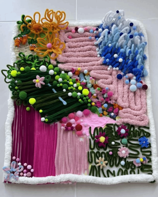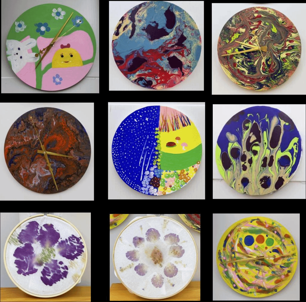 本次展览,展示了由 建筑与环境艺术学院的谭晖副教授和研究生团队引导精神病患以多样性艺术表现手法完成的作品。这些作品包括马克笔“有控涂鸦”绘画、流体画DIY挂钟、综合材料表现“想象力”绘画、植物拓印重塑物质形态、园艺营造环境疗愈、折纸绘图组合拼贴画、手工编织包裹座椅和扭扭棒造型组合立体画等。这些作品不仅仅是艺术的表现,更是患者们内心世界的真实写照。