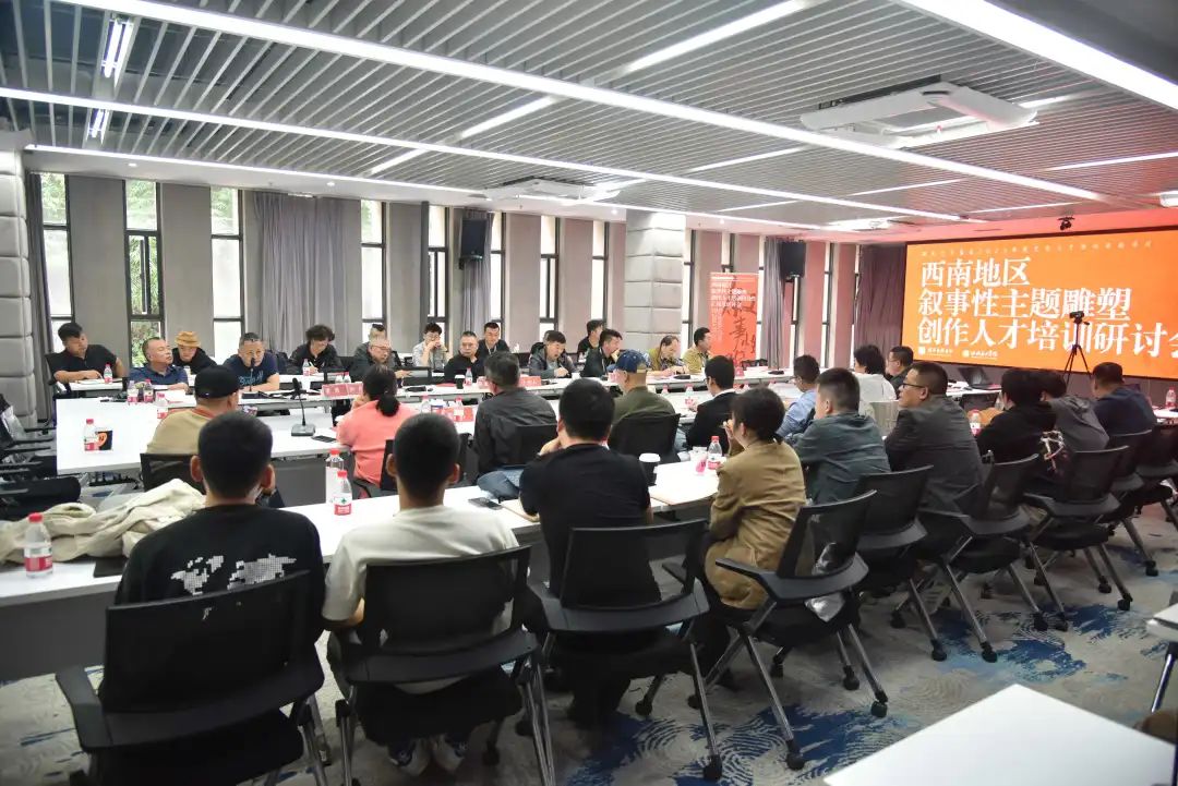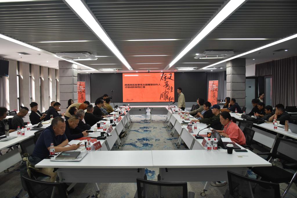 10月15日,《西南地区叙事性主题雕塑创作人才培训》阶段性汇报及研讨会在我校虎溪校区行政楼五会议室举行。出席会议的有重庆大学雕塑研究院院长郭选昌、西南大学美术学院副院长陈刚、校创作科研处处长王朝刚、造型艺术学院副院长唐勇,造型艺术学院雕塑系教授申晓南等教师代表及《西南地区叙事性主题雕塑创作人才培训》全体学员。研讨会由申晓南主持。