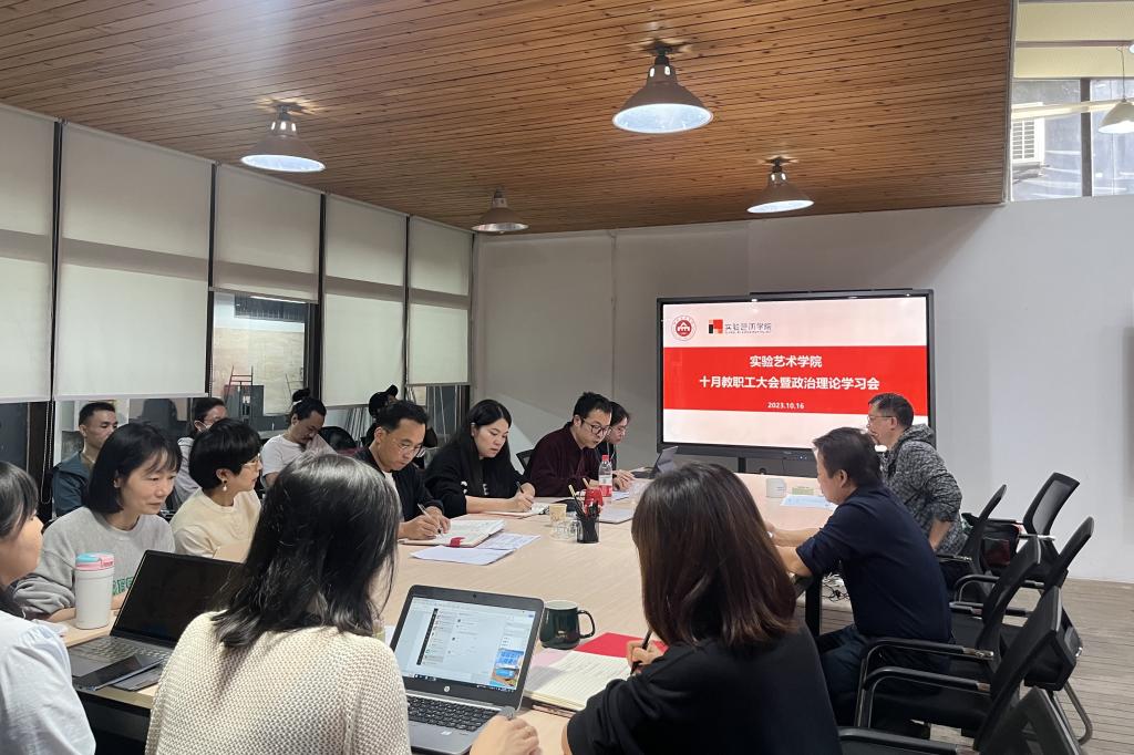 10月16日下午,实验艺术学院召开10月教职工大会暨政治理论学习会。会议由党总支书记吴倩主持,全体教职工参会。