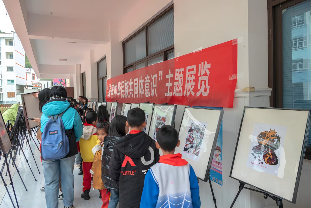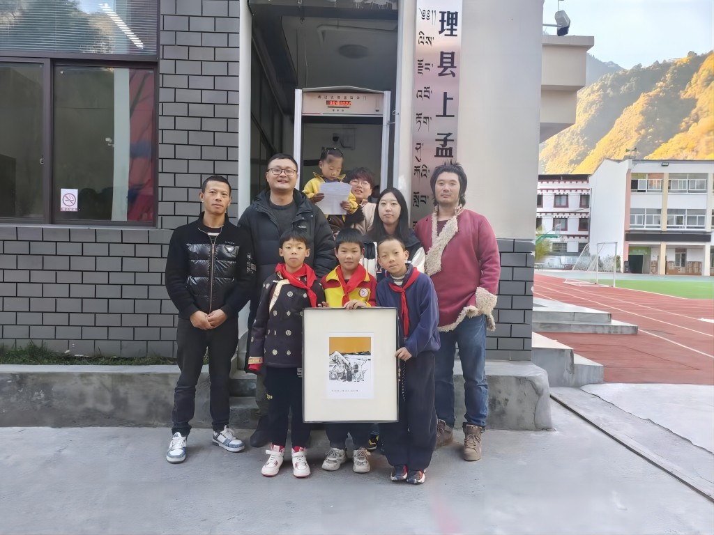 习近平总书记强调:“铸牢中华民族共同体意识,既要做看得见、摸得着的工作,也要做大量‘润物细无声’的事情。”为了进一步深化“铸牢中华民族共同体意识”宣传工作,充分发挥造型艺术学院“思政+艺术”工作优势。10月30日上午,造型艺术学院党总支本科生党支部书记龚梁带领“铸牢中华民族共同体意识”团队赴四川省阿坝藏族羌族自治州理县上孟乡小学开展主题展览,并与校方举行座谈会。