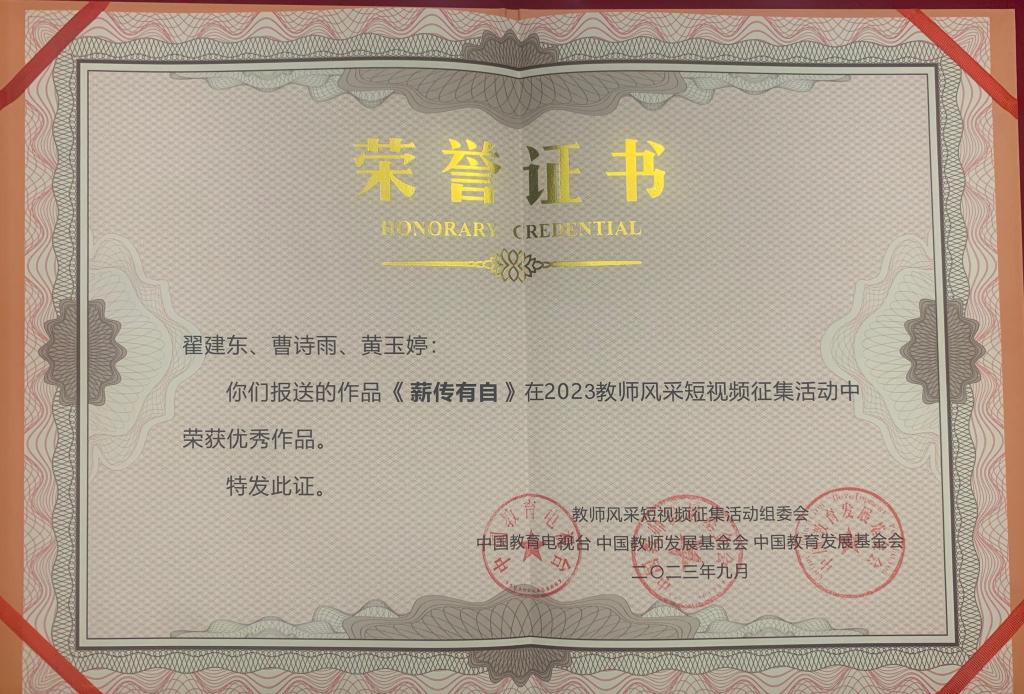 我校影视动画学院教师翟建东领衔(翟建东、黄玉婷、曹诗雨)报送的作品《薪传有自》从5000余部作品中脱颖而出,荣获优胜作品。这是本年度重庆市高校唯一荣获的优胜作品,也是我校首次获得的优胜作品。