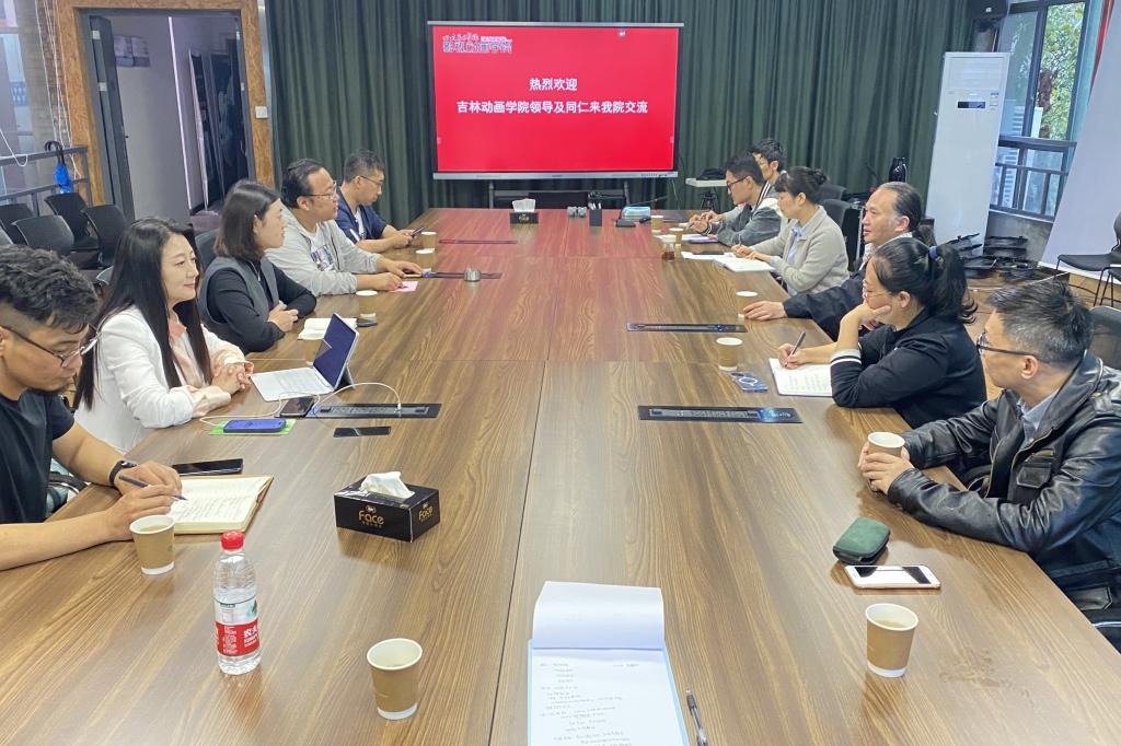调研会上,曾巧就学院课程建设、专业设置、特色工作等情况向吉林动画学院一行作详细介绍。王茜濡就教学方式方式、学生培养等内容作说明。各系就专业办学历程、学生情况、创作和就业方向、港澳台及留学生培养作细致讲解。双方围绕人才培养、产学研一体化、国际合作、联合教学、教研项目等展开深入交流。