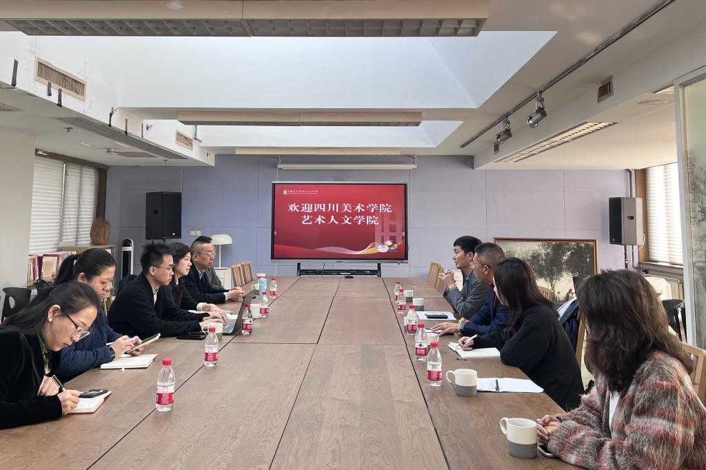 金江波从本院学科专业体系构建的基本思路出发,阐述了国际交流与合作项目、艺术赋能城市发展建设、中国话语体系构建的经验做法。史论系主任张长虹就学院师资队伍建设、招生情况、学生结构、以及就业情况等方面作介绍。双方就人才培养模式、课程设置、学术研究、平台建设、教师发展等内容展开深入探讨,就人才联合培养、师资互换支持、国际化合作、地域性合作等达成合作意向。