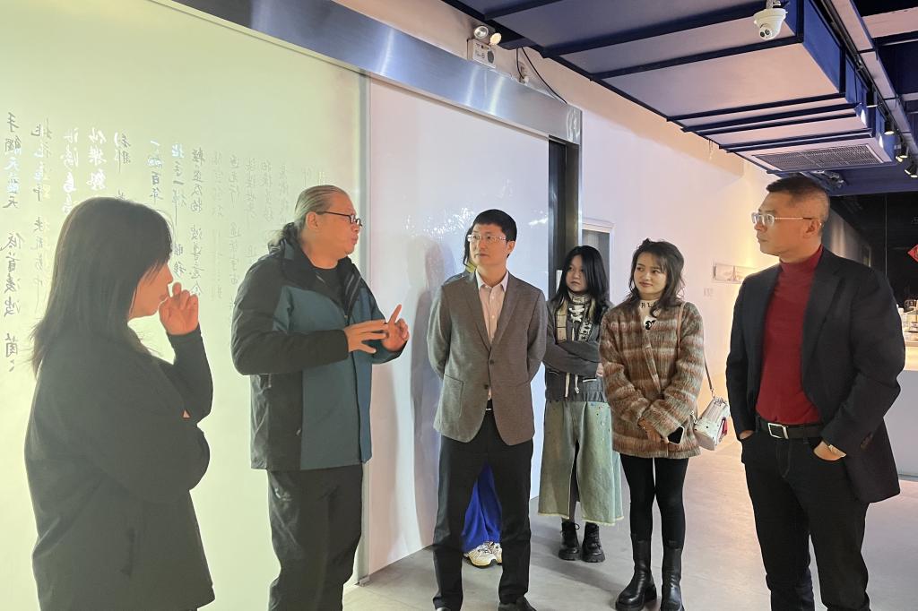 11月12日下午,调研组一行来到上海青鸟新媒体艺术,与创始人林俊廷交流座谈。林俊廷从自己作品创作的理念与过程讲述了新媒体艺术的内涵以及前沿的艺术理念。彰显了艺术与科技、传统文化的深度结合,展示了对中国艺术学理论话语体系的构建。为艺术人文学院跨学科建设以及理论研究与前沿科技结合打开更大的视野。