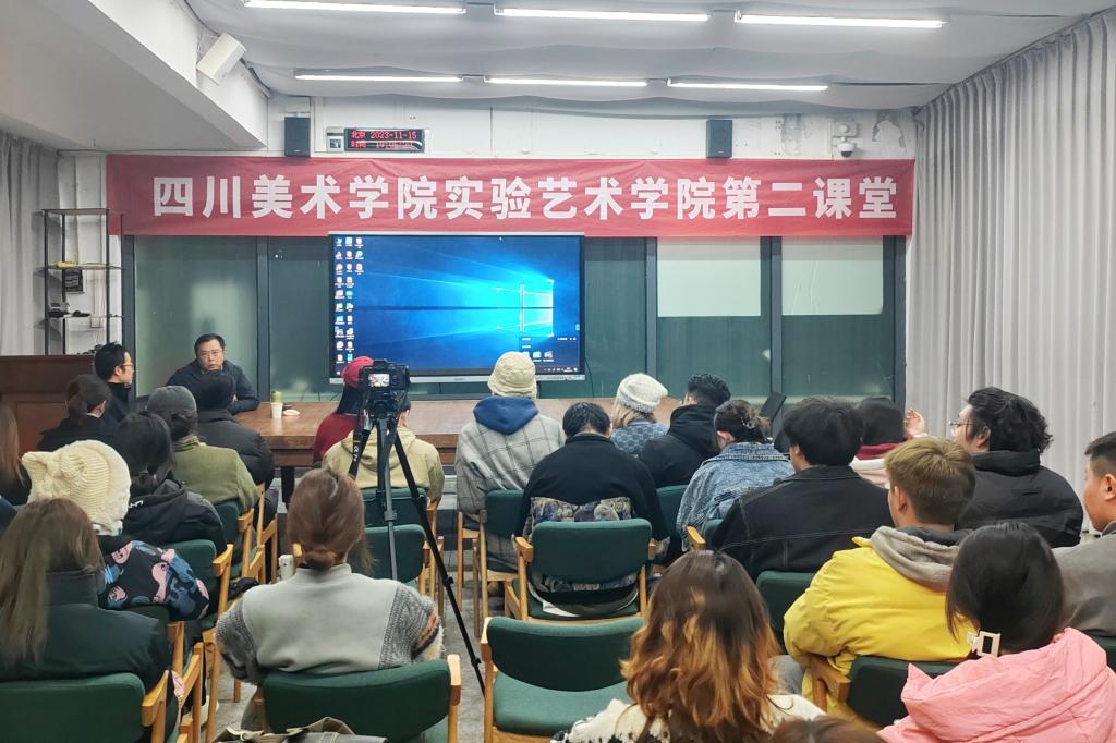 11月15日晚,实验艺术学院学生第二课堂在综合楼正式启动。学院院长李川与项目负责人、主讲教师单韬光,学院2023-2024学年度“青马工程”培训班学员,及本科生、研究生学生代表参加。