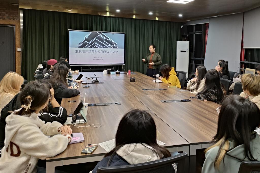 近日,由学生处主办、影视动画学院承办的“求职测评环节常见问题应对法”专题讲座在虎溪校区举办。讲座邀请重庆市高校就业创业专家库成员、大学生就业指导及生涯规划指导工作的刘奕岑担任主讲人,学校多个院系的同学参加讲座。