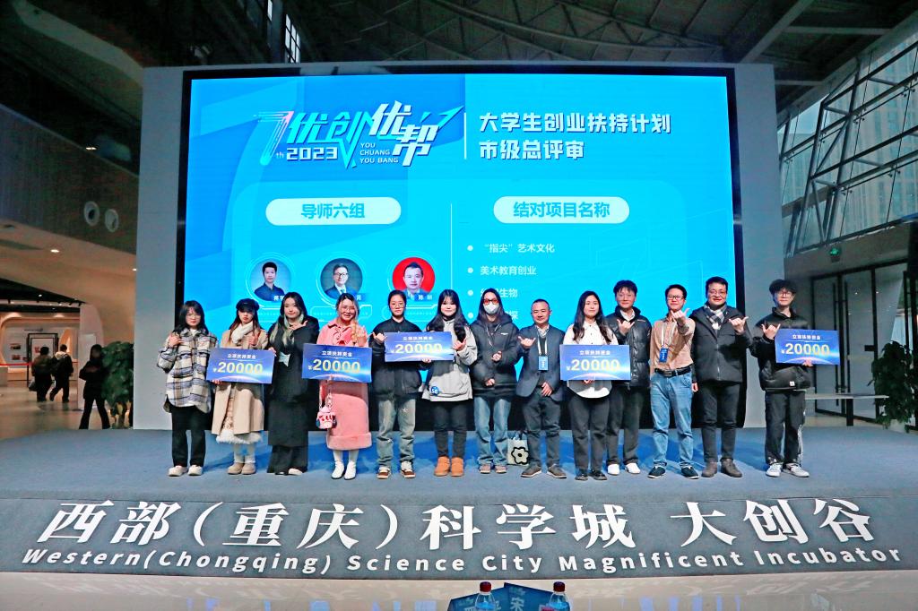 1月3日,由市教委和市人社局主办的第七期“优创优帮”大学生创业扶持计划市级总评审活动在西部(重庆)科学城大创谷梦花园举办。我校“‘指尖’艺术文化”“美术教育创业”“幻想生物—以‘软陶’为载体的探索”三个项目通过校级初选、市级片区遴选和市级总评审三轮角逐,从千余个项目脱颖而出,入选帮扶计划。三个项目的负责人分别来自公共艺术学院、建筑与环境艺术学院、实验艺术学院。此次扶持计划共入选50个项目,我校入选3个项目,入选项目数在重庆市高校中名列前茅,创我校历史新高。