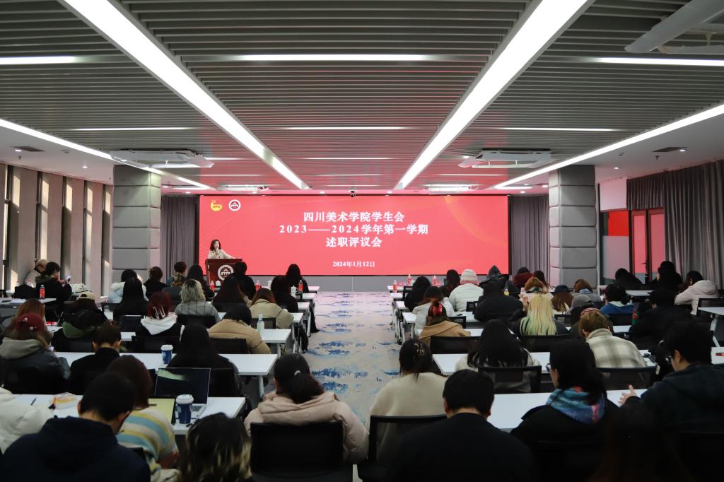 1月12日上午, 学生组织2023-2024学年第一学期述职评议会在虎溪校区召开。校团委书记杨璨、学生处心理健康教育中心主任郑红兰、校团委全体成员、各二级学院团总支书记以及重庆医科大学学生会主席团成员参加会议。