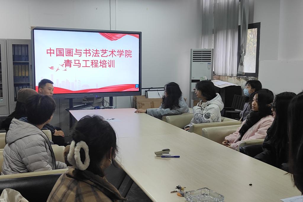 1月16日上午,中国画与书法艺术学院开展2024年第一期“青马工程”培训开班仪式。