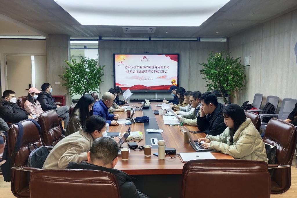 艺术人文学院党总支于1月19日召开2023年度党支部书记抓基层党建述职评议考核工作会。学院党总支委员及党支部书记、支委委员、教师党员、学生党员代表、教师代表参加了会议,杨茂森书记主持会议。