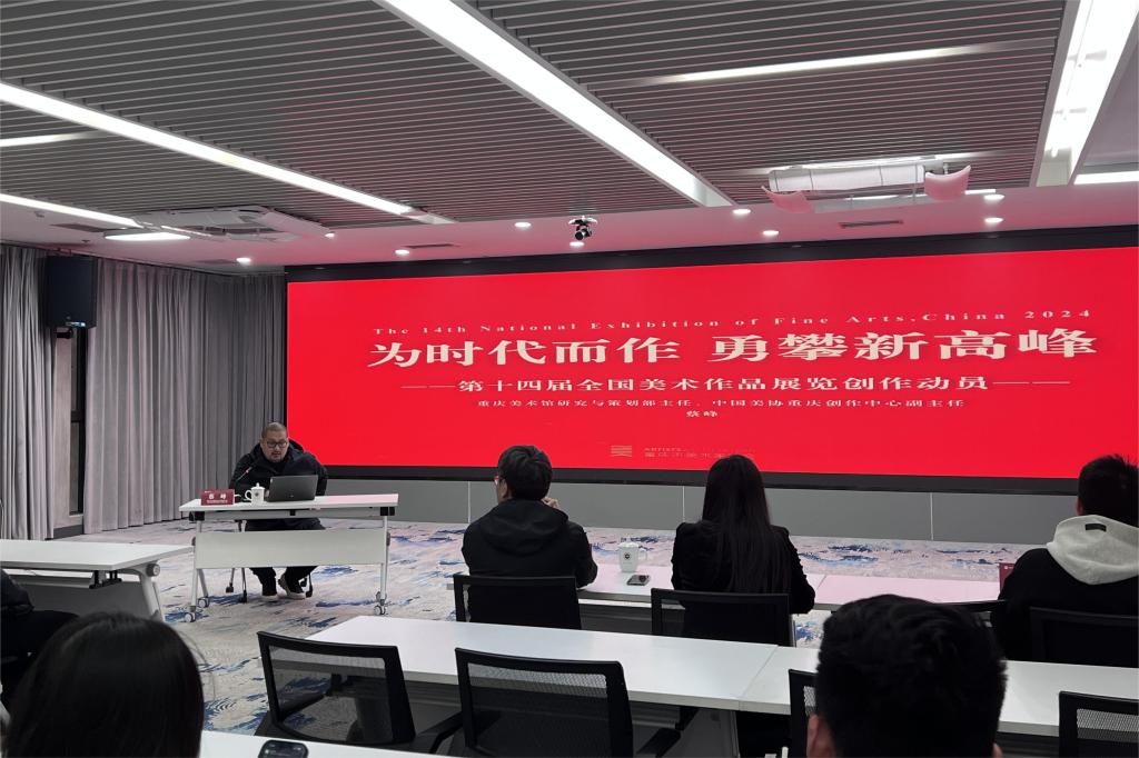 3月12日下午,学校国际交流与合作处、港澳台办公室邀请重庆美术馆研究与策划部主任、中国美协重庆创作中心副主任蔡峰到 为学校全体港澳台师生就第十四届全国美展开展宣讲说明会。