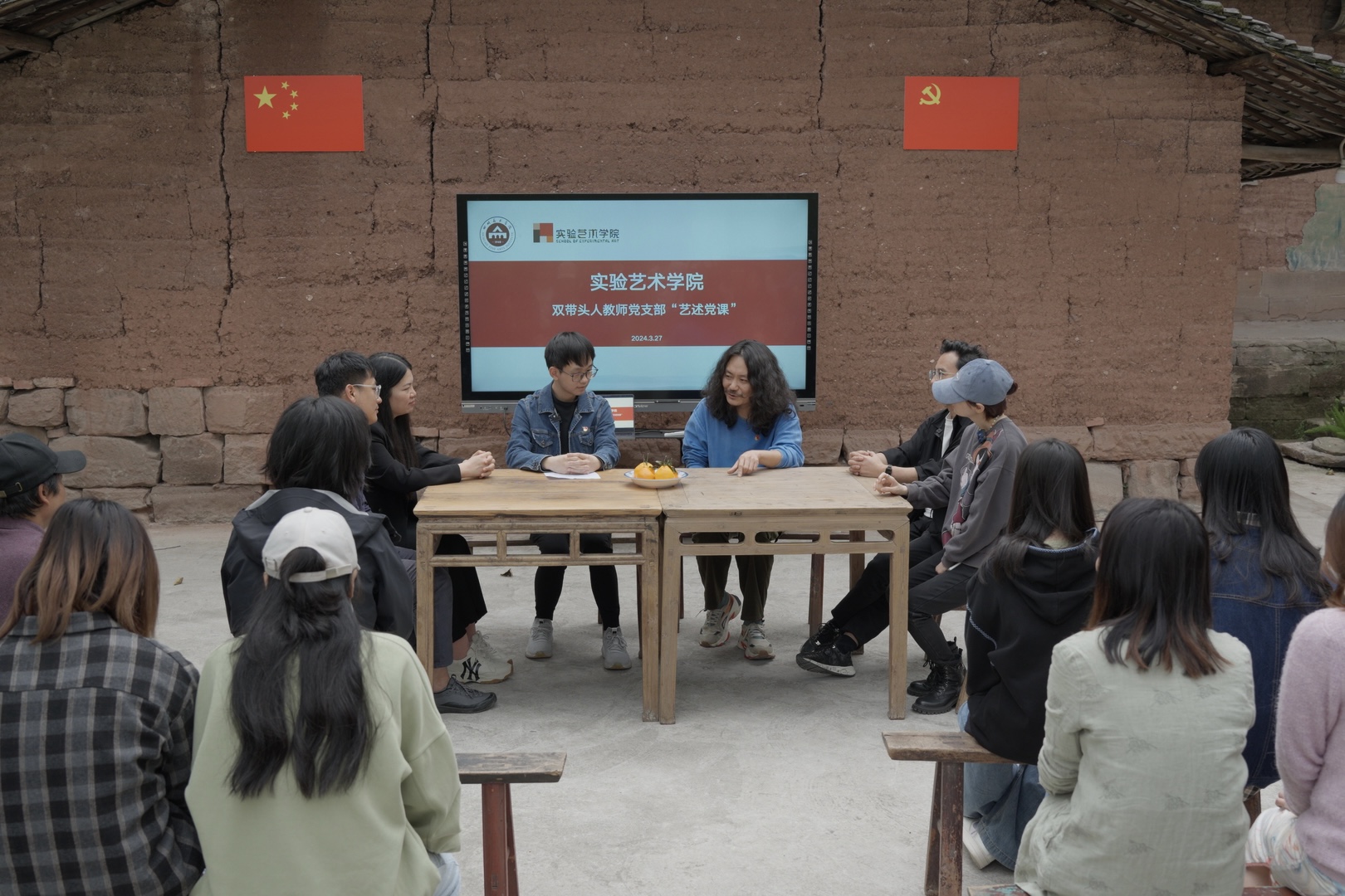 课后,学生党员王梓翊主持,吴倩,曾令香、张杨、曾途、宁佳伟等几位同志展开圆桌主题研讨,探讨实验艺术专业与中国现场、现实相结合的艺术道路探索等问题。