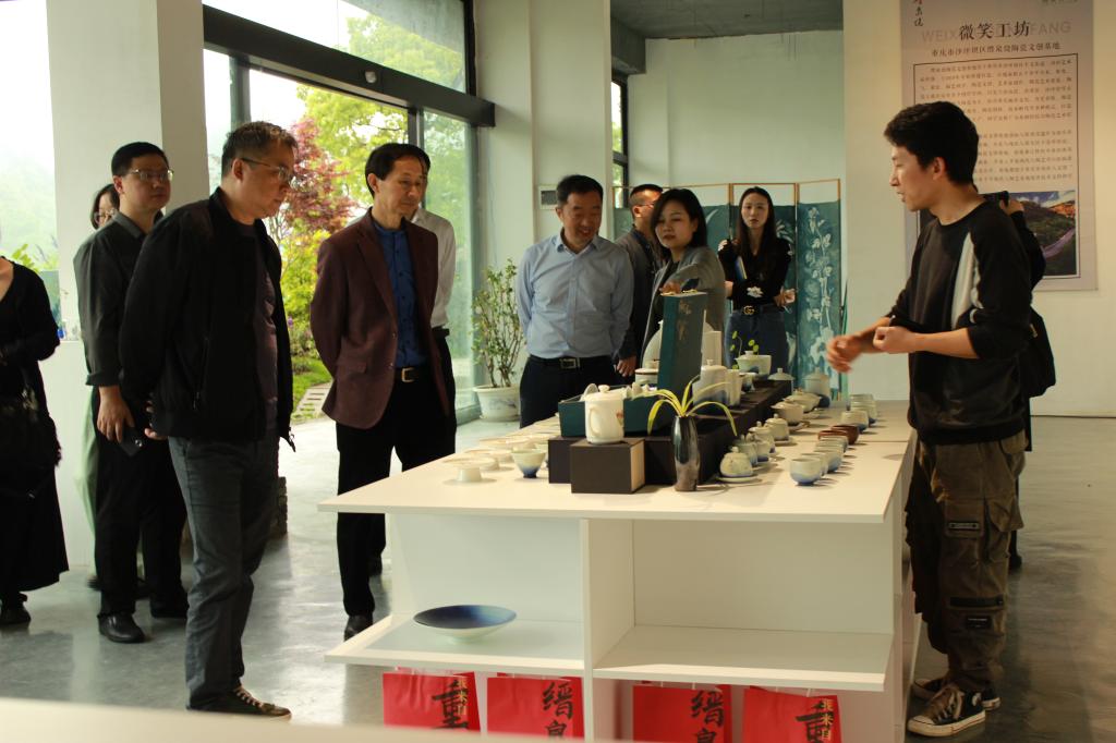 调研组先后参观了缙泉烧、三合美术馆、琴仙居、镜蓝染、萤火谷、石头花园等企业。随后在三河村党群服务中心进行AI乡建项目座谈会。会议由三河村驻村第一书记蓝小余主持,他提出三河村以“文旅农”相结合为主,坚定艺术家村落定位,引进农文旅企业,持续壮大产业规模;以研学为统领,艺术为主导,加强各方联动。沙区丰文街道党工委副书记何东,沙坪坝区科协党组副书记陈盈佚等分别就打造农耕文明、提升艺术文创品质发言。