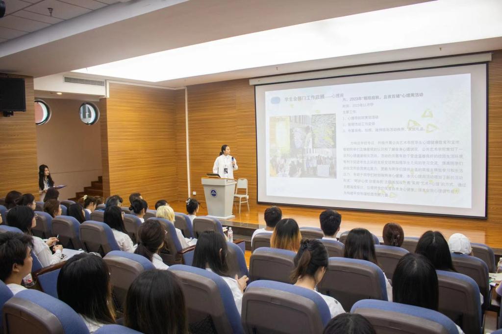 正式会议上学生会主席王恬恬对2023-2024学年的学生会履职情况作工作报告。报告指出,2023–2024学年学生会紧紧围绕学院中心工作,在学风建设、校园文化建设、学生权益维护、学术竞赛、社会实践等方面取得了显著成绩。同时报告对学生会下一年的工作进行了展望和思考。