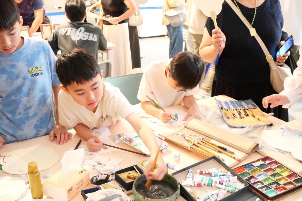 中国画与书法艺术学院的学生们挥毫泼墨、一展风采,创作出一幅幅技艺精湛的作品,受到了广大市民朋友的热烈欢迎。活动也激发了在场人员的书画热情,小朋友们跃跃欲试,积极参与作画,在场学生对观众提出的问题进行了耐心而详细地解答。活动萦绕着童心童趣,现场欢乐热闹。