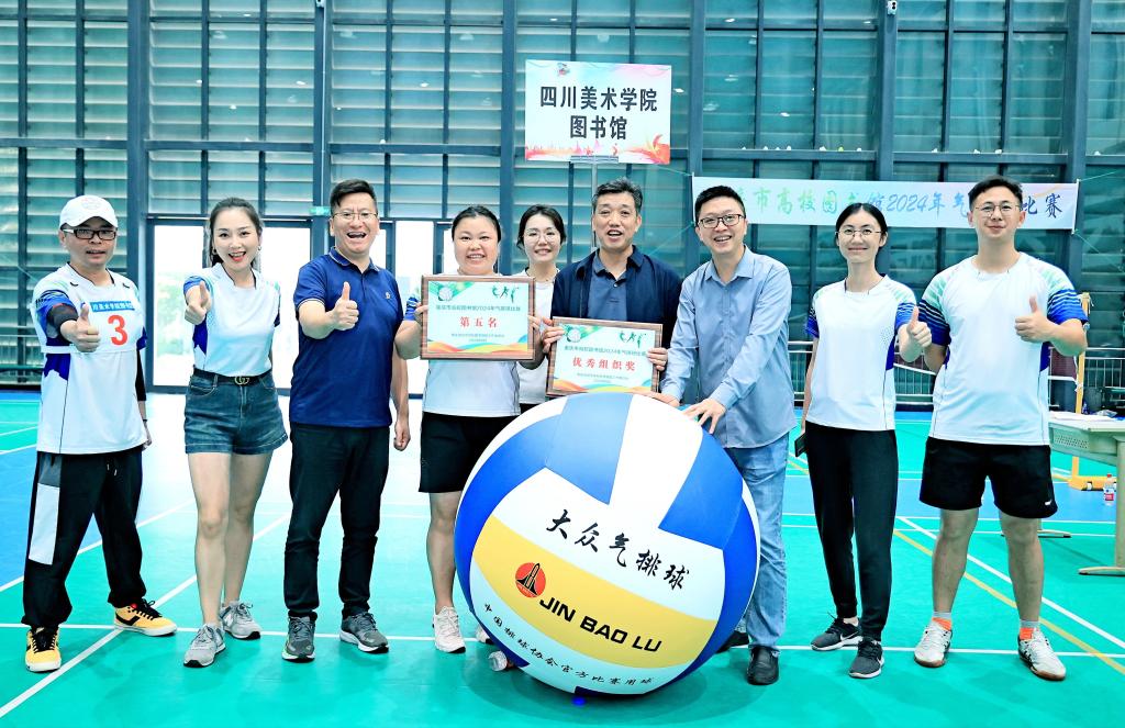 近日,重庆市高校图书馆2024年气排球比赛在重庆大学虎溪校区体育中心举办。我校图书馆作为重庆市高等学校图书情报工作委员会文化建设专委会主任单位,同重庆市高等学校图书情报工作委员会联合主办本次比赛,来自20所重庆高校图书馆的代表队参加比赛。