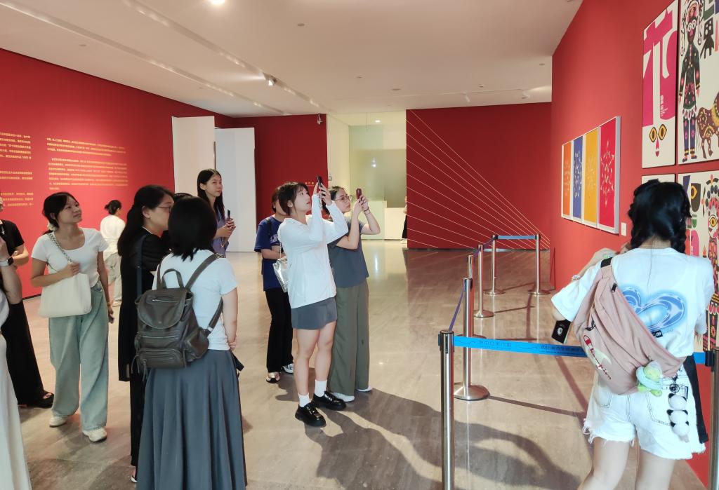 7月10日,营员们在艺术教育学院专业老师的引导下,参观全国美展艺术设计展区。老师为营员们由浅入深地讲解每件作品的创作动机和时代意义,鼓励同学们从中探索对艺术教育、美术教育等有所帮助的灵感和元素。