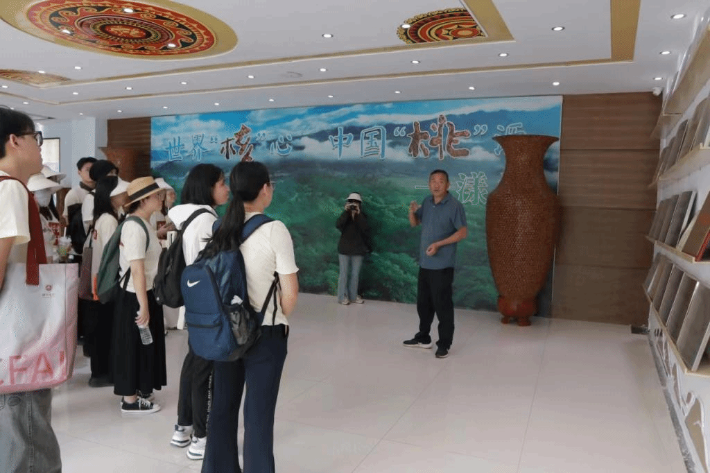 7 月17日,实践团对大理漾濞核桃有限公司、云南省林业和草原科学院漾濞核桃研究院进行实地调研,了解中国“核桃之乡”漾濞县核桃产业发展情况。7 月18日,实践团队走访漾濞县光明村、阿尼么村调研特色文旅产业,了解当地乡村振兴建设和民族团结进步工作。光明村立足村情,发挥党建引领,抓好“五振兴”助推“五提升”,推动农文旅融合。阿尼么村通过打造艺术村落,采用“党支部+合作社+公司+农户”模式,鼓励村民经营特色民宿实现增收。村支书还邀请返乡音乐人李永康讲述用艺术赋能乡村振兴的故事。实践团成员通过考察认识到党建引领下农文旅融合发展潜力巨大,提出以设计助力农文旅融合发展的建议和策略,为乡村振兴赋能。