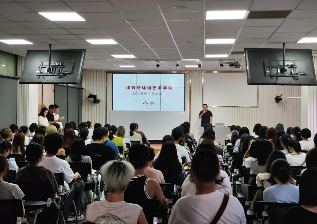 9月10日下午,建筑与环境艺术学院在设计楼举行了新生开学典礼。学院党委书记刘建峰、院长黄耘、党委副书记郭辉,各系主任、教学秘书和全体辅导员出席,会议由学院副院长黄红春主持。