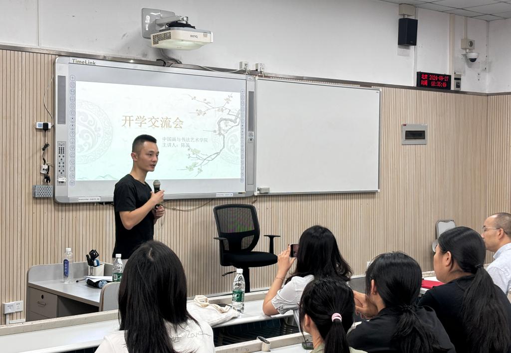 9月27日上午,中国画与书法艺术学院在虎溪校区举办师生交流会。本次交流会以“学奔新程,健康起步”为主题,邀请2022届毕业研究生陈品分享学习经验,为学弟学妹们提供指导和启示。此次交流会由中国画与书法艺术学院党委副书记范功主持,辅导员、2024级学院新生及其他学院部分研究生参与了交流互动。