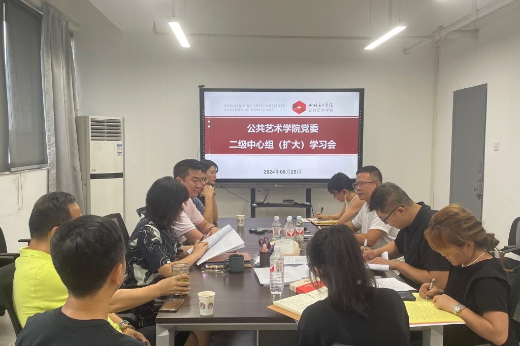 9月25日下午,公共艺术学院党委召开二级中心组(扩大)学习会,学院党政班子成员、党委委员、纪委委员、党支部书记参会。会议由公共艺术学院党委书记雍朝永主持。