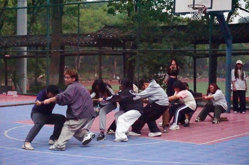 此次趣味运动会设置了“绝地糖豆人”“扭扭穿花裤”两项个人赛,以及“小鸡啄沙包”“指压板boom”“拔河”三项团体赛,集趣味性与运动性于一体。活动期间,大家协同合作、展示风采、相互鼓励,加油声、口号声、欢笑声此起彼伏。活动中还穿插了需要每位同学“拼手速”的抽奖环节。全体同学以满腔热情和高昂斗志投入比赛,比赛过程精彩纷呈,现场气氛热烈,充分体现了参赛队伍的集体意识、竞争意识和拼搏精神。最终,2024级水彩一班获得团体总分第一名、艺术教育二班获得团体总分第二名、美术教育一班获得团体总分第三名。