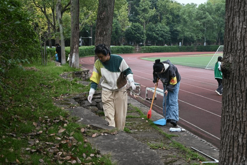 活动期间,学院各系学生积极响应,踊跃参与,校园内处处涌动着劳动的热潮。工业设计与产品设计系的同学们身着志愿马甲,手持清洁工具,对校园主干道沿途的垃圾进行了全面细致的清理。数字媒体艺术系的同学们则以小组为单位,深入操场和教学楼区域,擦拭运动器材、清扫楼道走廊。服装与服饰设计系的同学们在校园内捡拾垃圾,清理教室卫生死角,以辛勤的汗水换来校园公共区域的焕然一新。手工艺术系的同学们则聚焦于校园的彩虹梯田和周边山林区域,积极开展落叶清理行动。设计学系的同学们承担起操场半边区域的清扫任务,对运动场地进行了深度清洁与美化,清理跑道污渍、整理草坪边缘,为广大师生打造了一个更加整洁、舒适的运动环境。学院新生还开展了寝室内务整理活动,整理床铺、摆放物品、打扫卫生。