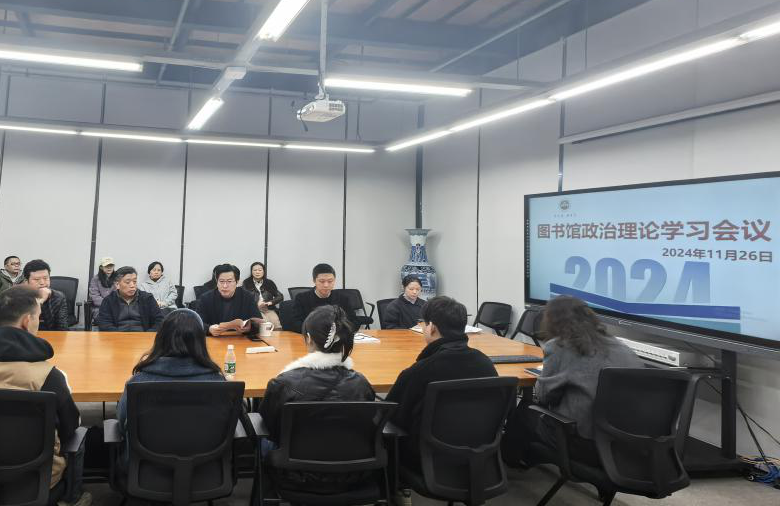 11月26日下午,图书馆在虎溪校区召开教职工政治理论学习会。全馆教职工参加学习,会议由图书馆馆长杨吟兵主持。