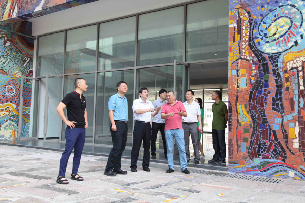 考察组冒着酷暑在我校领导陪同下实地考察了色彩斑斓、造型独特的我校新校区美术馆,对我校新校区美术馆独特的设计风格,良好的展览条件、完善的设施设备留下了深刻印象,对重庆市成功申办第十二届中国艺术节充满了信心。