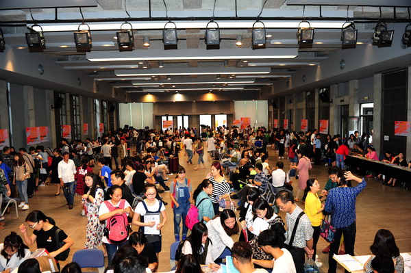 “繁花笑靥喜迎八方学子,绿树摇曳共谱七彩未来”,2016年9月8日,秋雨送爽,凉风习习, 虎溪校区迎来了来自全国各地的本科新生1309人,研究生新生266人。他们怀揣着梦想与希望,饱含着欣喜与激动,在多功能厅完成报到、注册及缴费等手续后,将开启美好的大学新生活。迎新现场人头攒动,报到过程井然有序。