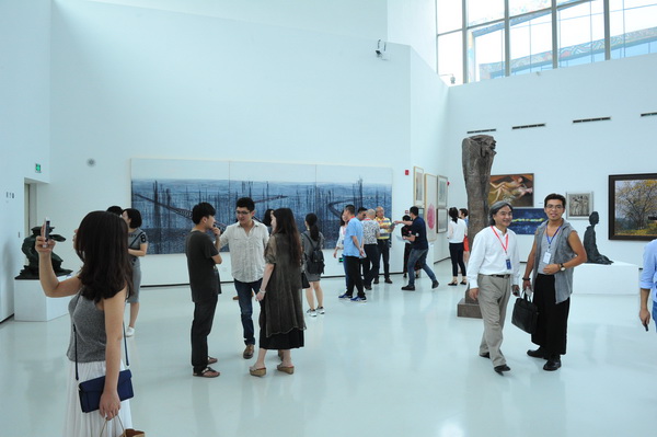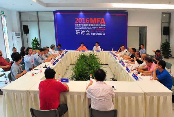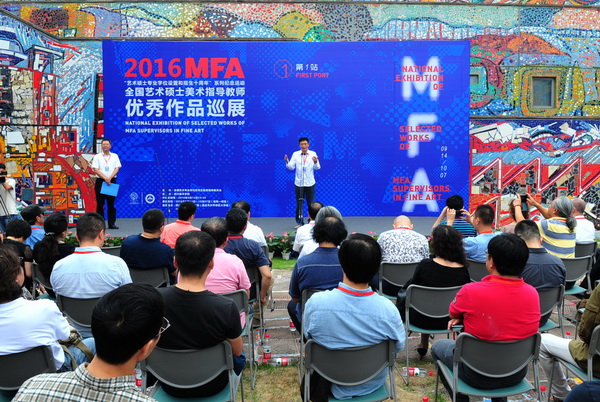 开幕式上,庞茂琨、曹意强、张荣先后为展览致辞。吴刚副市长宣布展览开幕。当日下午4点,“全国艺术硕士美术指导教师优秀作品巡展”(第一站- 站)研讨会在美术馆举行,来自17所巡展院校的15所巡展院校代表参会。庞茂琨校长主持会议,曹意强对此次展览做了简要介绍,指出艺术硕士学位的设置在我国具有正本清源的意义。与会嘉宾围绕艺术学独立成门类后艺术教育的标准以及本展览在各自院校巡展的准备情况做了发言。