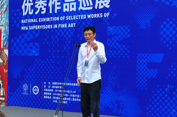 作为巡展首站的承办方,庞茂琨院长在致辞中谈到: 很荣幸能够作为“全国艺术硕士美术指导教师优秀作品巡展”的第一站。尽管 成为MFA培养单位的时间只有短短的6年时间,但是在实验教学改革与创作实践人才培养方面,川美却有着鲜明的教学特色和文脉传承。 MFA研究生教学在严格落实教指委的培养宗旨的同时,也紧密结合本学院的教学理念,通过对当代艺术现场与成果不断转化与吸收,形成并建立了关于MFA人才培养的基本体系。