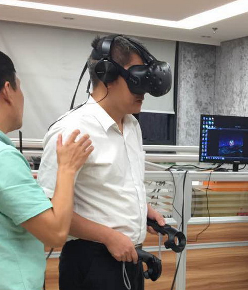 中域财众控股董事长陈禹铭先生向我校一行人员详细介绍了旗下以VR体验为主打的“星际未来城”项目,企业科技研发人员介绍了当前VR发展趋势及未来应用设想。