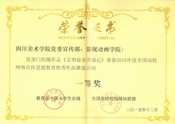 近日,由教育部思想政治工作司 国家互联网信息办公室、网络社会工作局联合举办的首届全国高校网络宣传思想教育优秀作品评选活动评审结果揭晓,我校党委宣传部、影视动画学院推荐的微作品《文明寝室养成记》获得一等奖。(微作品组)