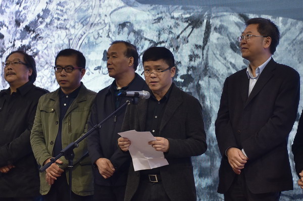 10月14日上午,第七届黄原书画奖学金及“逍遥游心”黄原书画艺术展先后在重庆美术馆开幕。我校党委书记黄政、校长庞茂琨,重庆市文联副主席杨矿,四川省广汉市常委、宣传部长阙显凤,四川省博物院首席专家魏学峰,墨华艺术研究会会长张自启等出席了开幕式。来自中央美术学院、天津美术学院、西安美术学院等全国美术院校的评委和我校中国画系党政领导黄山、王士臣,展览总负责人黄越、中国画系师生等参加了开幕式。中国画系主任黄山主持开幕式。