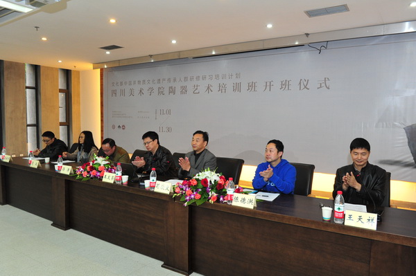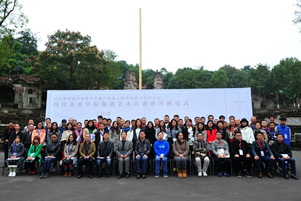 11月1日上午,文化部、教育部“中国非物质文化遗产传承人群研修培训计划”在我校再次启动。第二期研培班(陶器艺术培训班)形成了整套完备的培训模式,在文化部主导和重庆市文化委员会非物质文化遗产处的指导下,精选出在传统荣昌陶器制作工艺上最具发展潜力的传承人,结合高校艺术设计教育反本开新。
