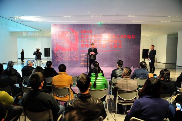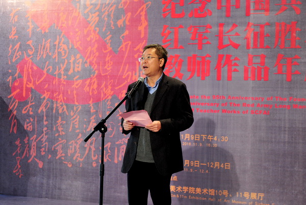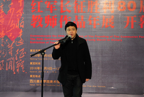 11月9日下午, 2016“纪念中国共产党成立95周年和红军长征胜利80周年”教师作品年展在大学城校区拉开帷幕。一年一度的教师作品年展,是我校促进艺术创作、鼓励创新、提升川美发挥当代艺术创作高地作用的重要举措。今年的年展把“纪念建党95周年和红军长征胜利80周年”定为主题,旨在落实习近平总书记在文艺座谈会上的讲话精神,引导和鼓励全校教师坚持“二为方向”、“双百方针”,坚持以人民为中心的创作导向,创作出无愧于时代的优秀艺术作品,弘扬中国精神,彰显信仰之美。