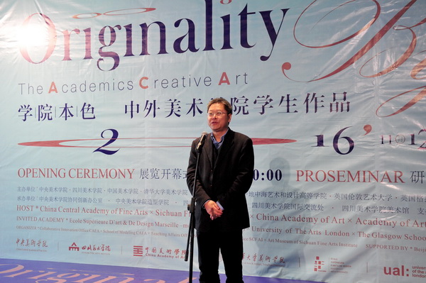 国内外参展院校嘉宾代表、中央美术学院党委副书记王少军,英国格拉斯哥美术学院造型学院院长Alistar分别在开幕式上致辞。出席开幕式的领导和嘉宾为展览获奖学生代表颁奖。最后,我校黄政书记宣布展览正式开幕。