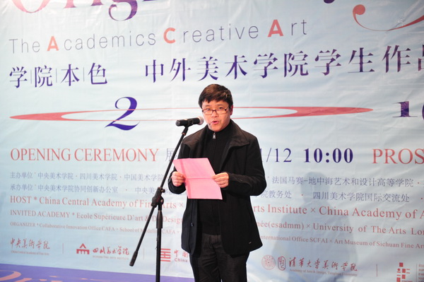 开幕式上,庞茂琨校长致欢迎辞,向来到重庆、共襄文化盛举的领导和嘉宾表示热烈欢迎。他说,今天的高等美术教育正遭遇前所未及的变革,“学院教育应该坚持什么、应该改革什么、应该发展什么?”等议题,正是今天所有从事高等美术教育的领导、教师都应该积极思考的问题。在国家统筹推进“双一流”建设和国际融合的双重背景下,“学院本色2016”正尝试联合国内外一流院校,拓展为“4+4”的参展院校格局,以高水平的艺术展览形态,为社会各界打开一个观察这些问题的窗口,为中国一流美院的建设搭建一个文化交流平台,为创新重庆、创新中国的发展贡献艺术的力量。