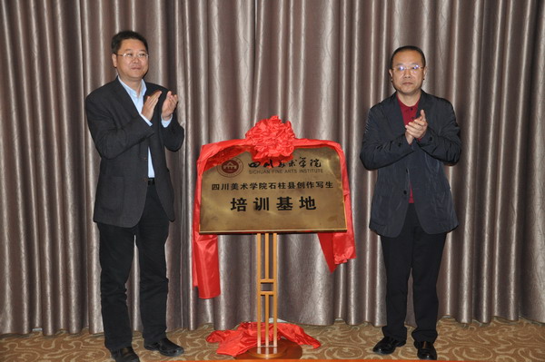 黄政向石柱县人民政府授予了“ 石柱县创作写生培训基地”的牌匾。