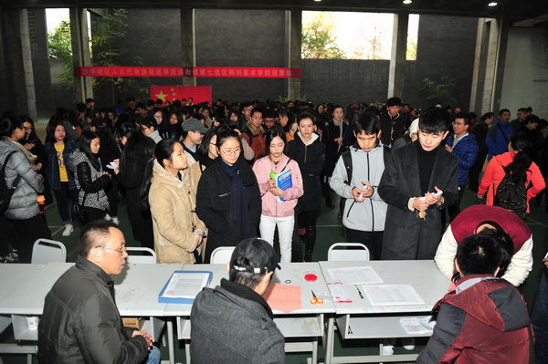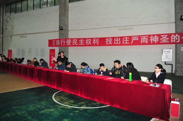 12月2日,重庆市沙坪坝区虎溪街道第七选区进行了区人大代表换届选举投票,设立在我校虎溪校区综合楼室内体育馆的投票站气氛庄重而热烈。当日,我校各选民小组共计6527名选民来到投票站参加投票选举,为选好区人大代表投下庄严神圣的一票。