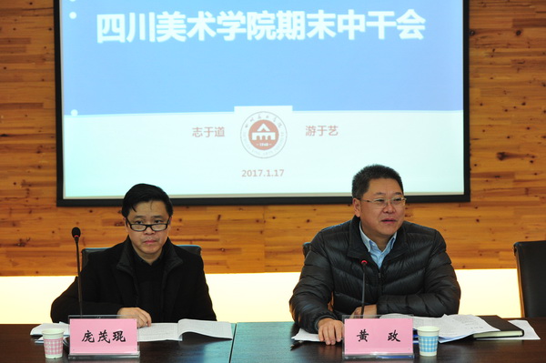 黄政对学校2016年取得的成绩表示肯定,对全体教职工一年来的辛勤付出表示感谢;对期末各项收尾工作及假期间有关值班、安全稳定、设施设备的维修维护、外出招生及节假日期间的廉洁自律提出了要求。他指出,2017年是学校发展的关键一年。学校将全力以赴做好五个方面的工作:一是狠抓博士点建设工作,提升内涵式建设;二是积极迎接2018年本科教学审核式评估,全面提高教育教学质量;三是加强创作与科研,做好迎接第十三届全国美展的准备工作;四是坚持全面从严治党,重点抓党的基层组织建设,推进党内政治生活进一步规范;五是加强思想政治工作,充分发挥其引导、保证和服务作用,团结和动员广大教职员工积极投身学校的发展事业,以优异的成绩迎接学校第二次党代会的召开。